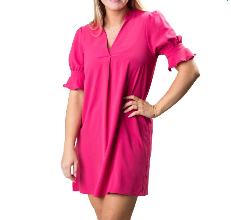 Elevate your workday style with our Terry Dress – where comfort meets sophistication in a business casual essential that commands attention with its signature notched neck and flounce sleeves. Perfect for the office and beyond, this versatile piece transitions seamlessly from morning meetings to after-work gatherings when paired with your favorite accessories, creating an effortlessly polished look without sacrificing comfort.