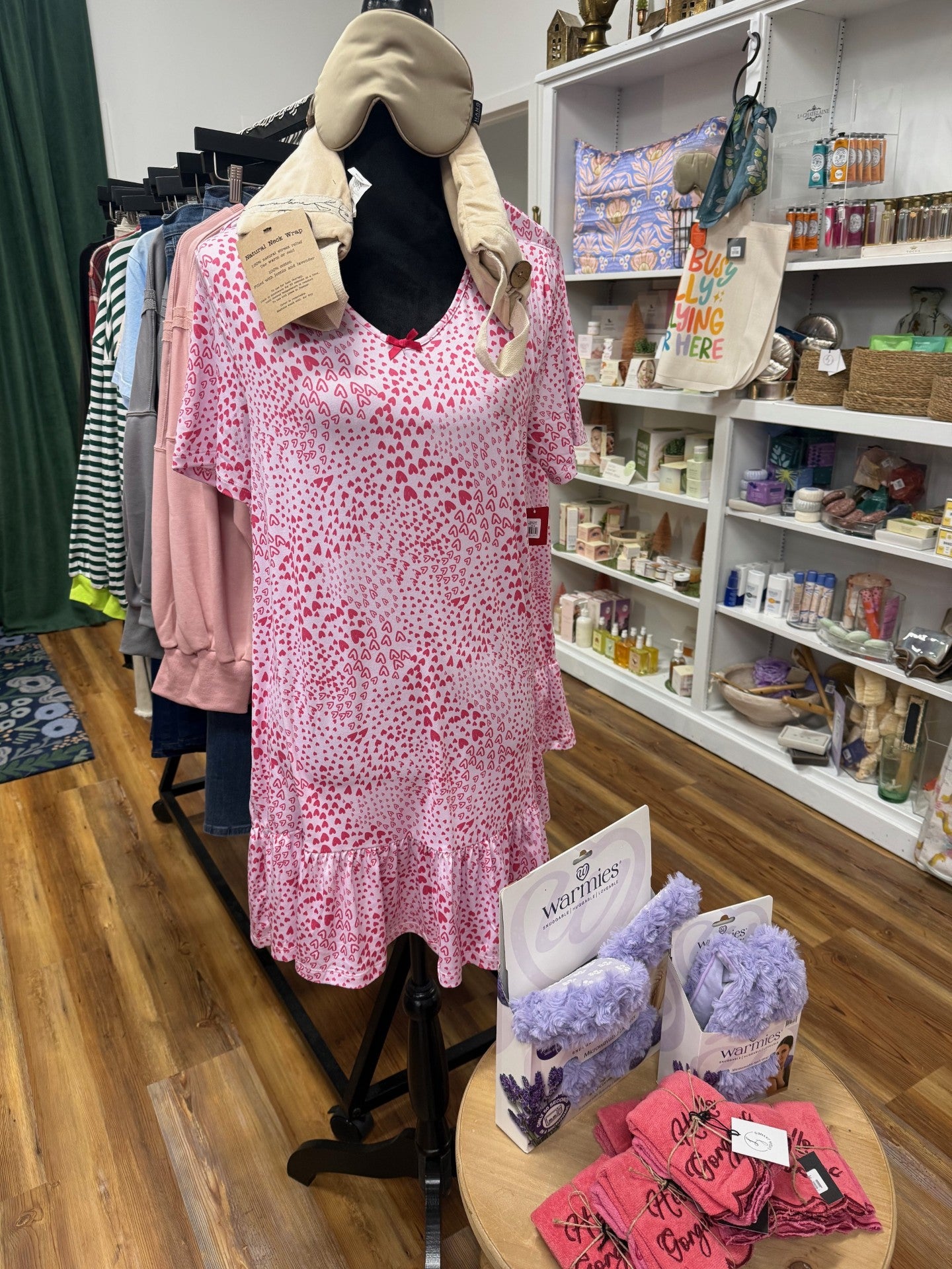 Fall in love with comfort in this Heart Print Yummy Jersey Top. Made from ultra-soft yummy jersey fabric, this top features an allover heart print, a flattering V-neckline, and a feminine flounce hem that adds just the right touch of movement.